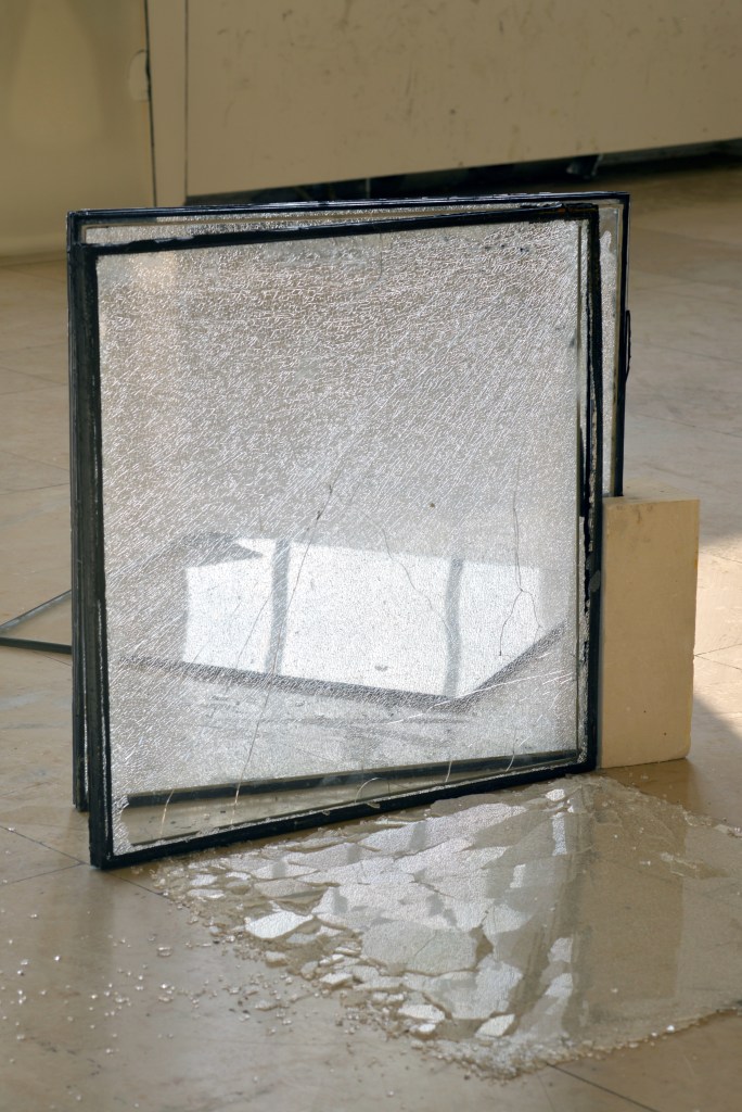 Limestone bases, broken tempered glass, glass heated in a furnace between 150 and 1000 degrees. Pictures by Volkmar Walter.