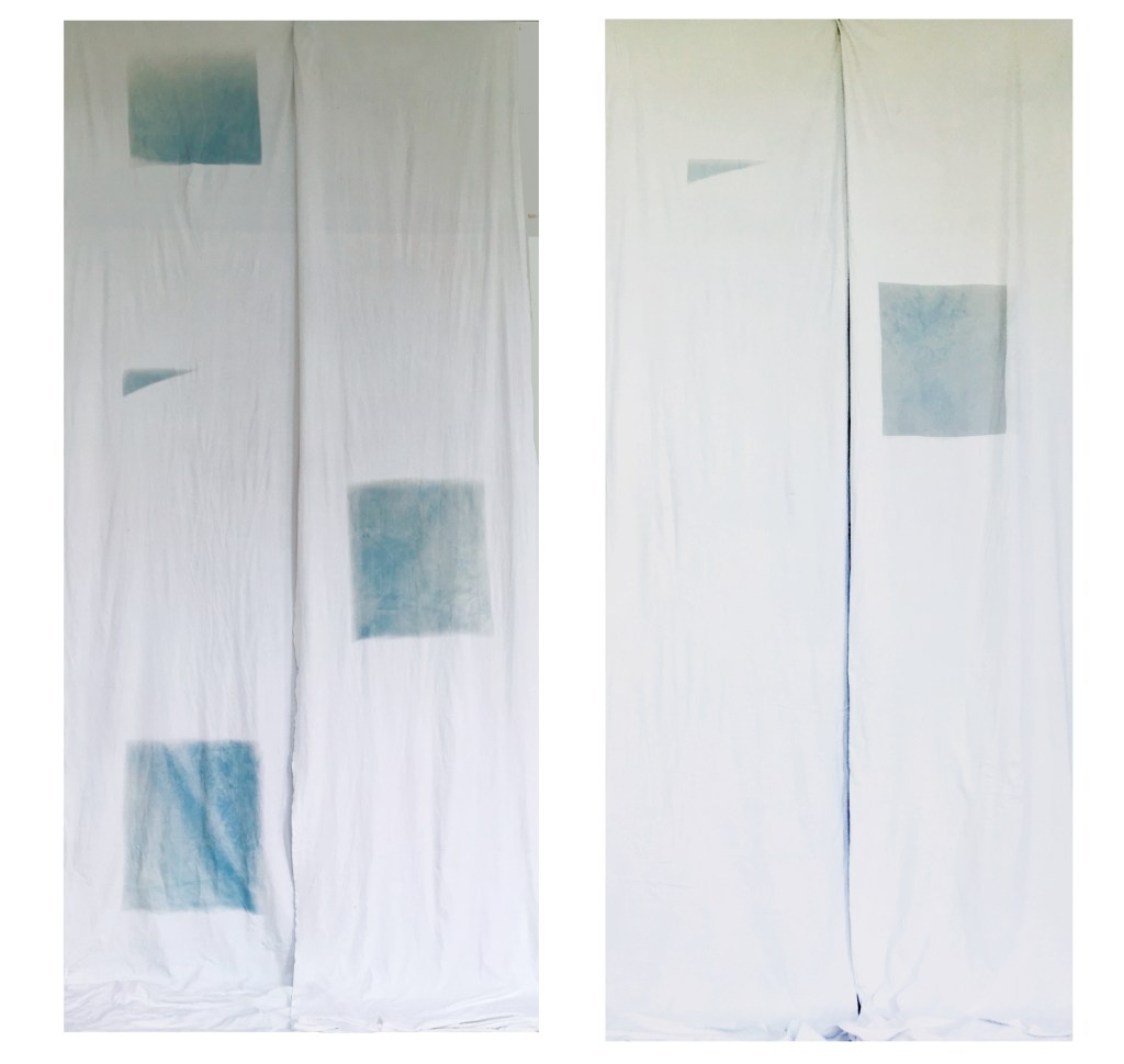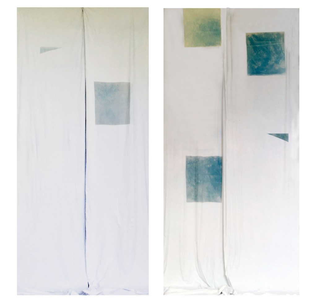 Canvas dipped in a photosensitive product were stretched in front of the studio windows. These windows, which had been replaced a few months earlier by defective glass from the Alte Pinakothek Museum, revealed their UV filters to be still active. Only the empty window frames provided an impression of the sky.