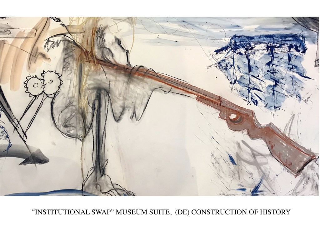 View of the exhibition in the Georges studio. The diptych is exhibited together with an original window from the Alte Pinakothek.